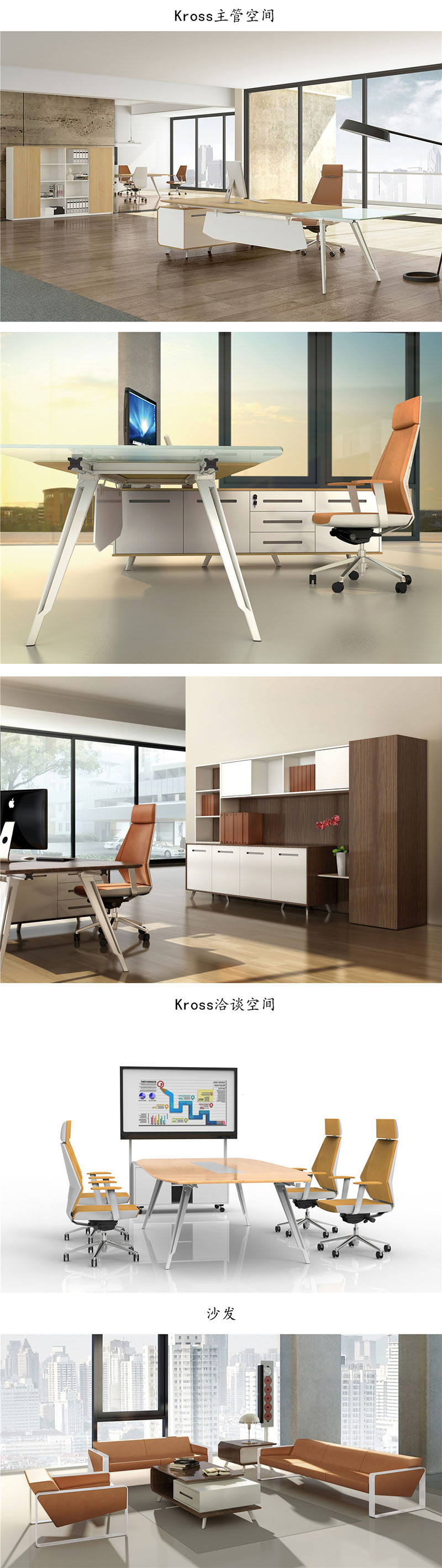 中型外企、私企、電子商務(wù)、創(chuàng)意機(jī)構(gòu)、IT、 金融等行業(yè)中高層管理員。注重生活品質(zhì)感,追求對細(xì)節(jié)的極致完美, 靈活而具時(shí)尚感特征群體。 辦公環(huán)境趨于現(xiàn)代化、高效且充滿靈感。Kross鋁合金腳形體借鑒央視新大樓的解構(gòu)主義的造型理念,鏤空巧變得形體,四周體面豐富多變,扭曲中富有變化,變化寓于大統(tǒng)一中,造型充滿力感,體現(xiàn)陽剛,剛健之美,亦是管理人員的氣勢所在,獨(dú)特的層次切面、追求極致細(xì)節(jié)造物思想,給予管理者優(yōu)雅精致的辦公享受。